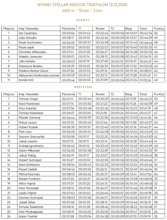 Zapraszamy na nowy cykl zawodów STELLAR INDOOR TRIATHLON, który łączy intensywność rywalizacji z komfortem treningu pod dachem.